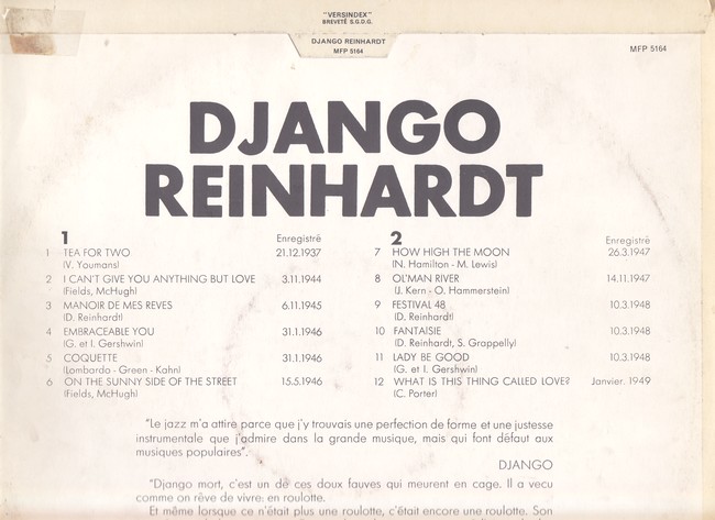 DJANGO REINHARDT – MFP 5164 – DISQUE SWING