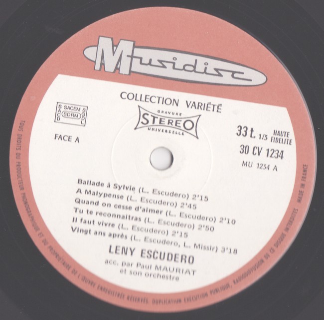 LENY ESCUDERO – accompagné par PAUL MAURIAT -30 CV 1234 – 1972