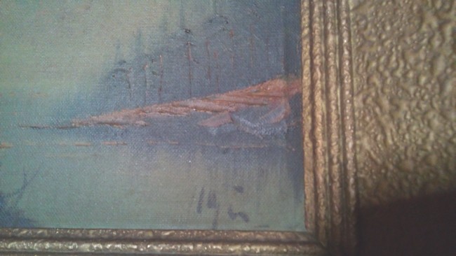 Tableau Vue chalet et montagne ancien huile sur toile à restaurer date inconnue