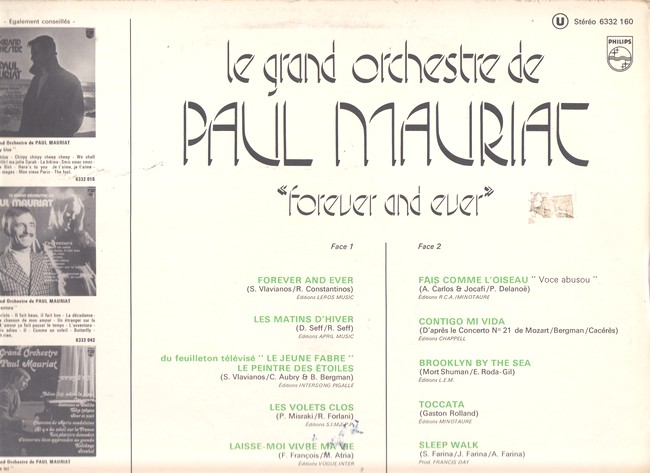 Publié dansle grand orchestre de PAUL MAURIAC – <> – PHILIPS – 6332.160 – 1973