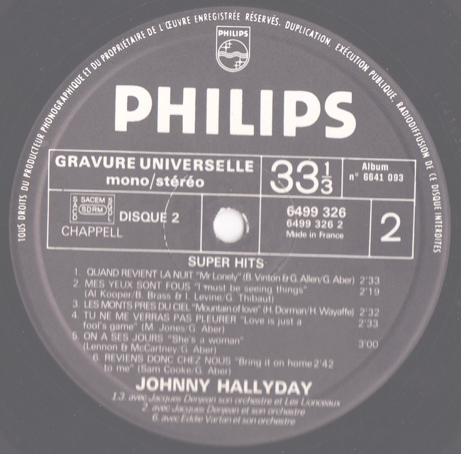 JOHNNY HALLYDAY – SUPER HITS – PHILIPS 6641 093 – Compilation