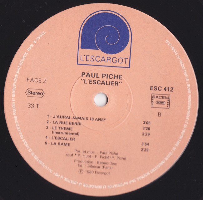 PAUL PICHE – L’ESCALIER L’ESCARGOT – ESC 412 – 1980 – rare – (6)