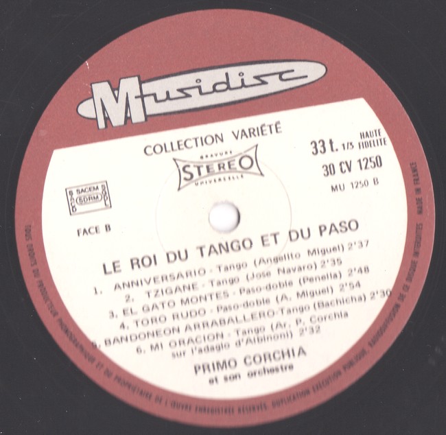 Primo CORCHIA et son orchestre – Musidisc COLLECTION VARIETE – 30 CV 1250 (4)