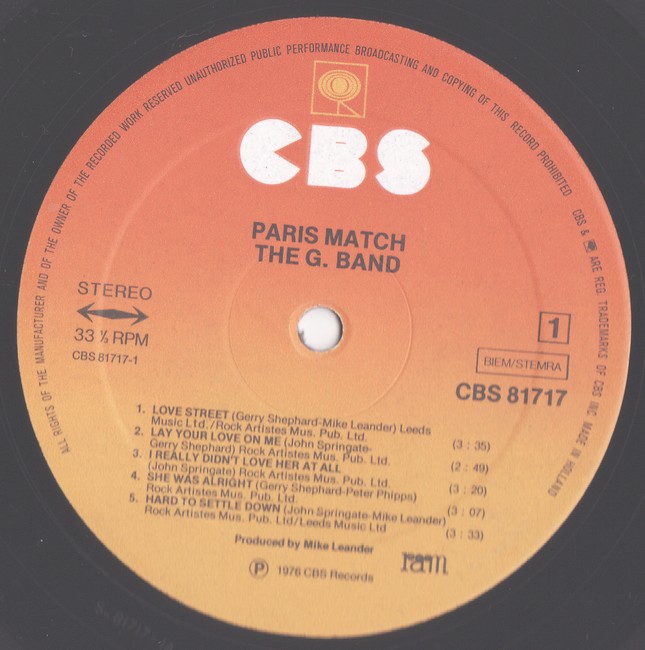 The G BAND – PARIS MATCH – CBS 81717 – 1976 – (5)