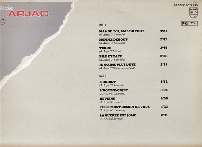 Image précédente Image suivante Antoine ARJAC – Caractères Présents – PHILIPS – 6313 445 – publication PHONOGRAM – 1982 original (2)