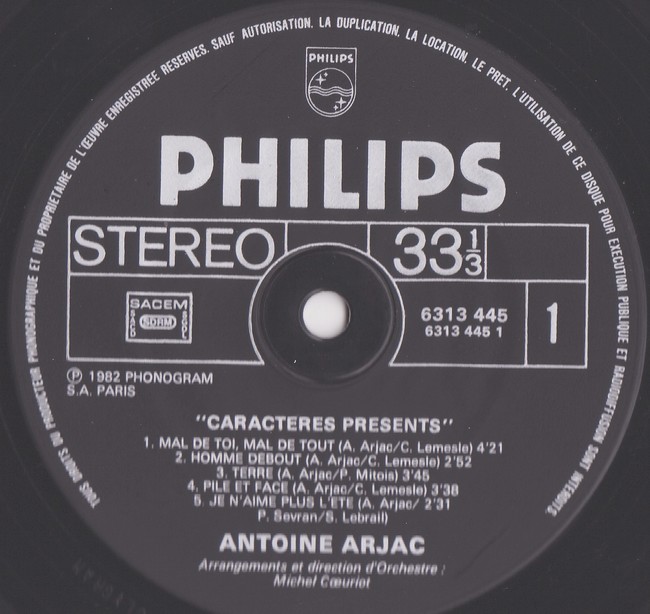 Image précédente Image suivante Antoine ARJAC – Caractères Présents – PHILIPS – 6313 445 – publication PHONOGRAM – 1982 original (3)