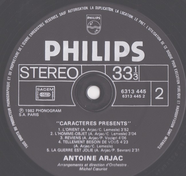 Image précédente Image suivante Antoine ARJAC – Caractères Présents – PHILIPS – 6313 445 – publication PHONOGRAM – 1982 original (4)