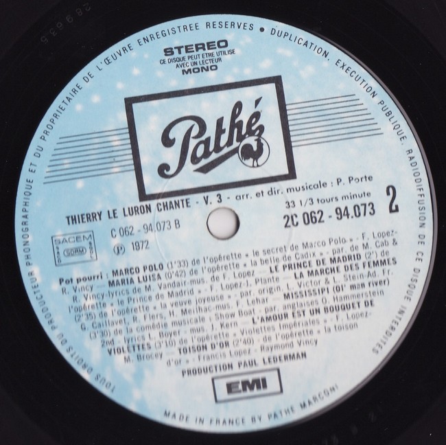 Image précédente Image suivante thierry le luron – … chante – vol.3 – PRODUCTIONS PAUL LEDERMAN – C062-94073 – 1972 – original (4)